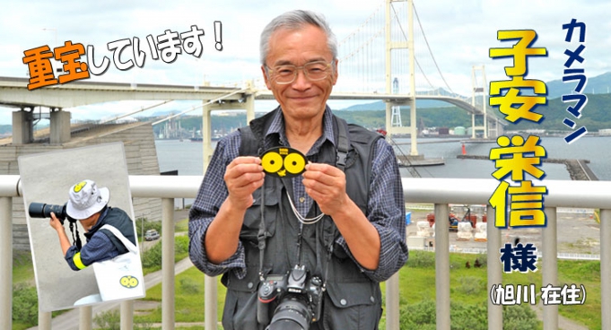 カメラマンで、旭川市等で個展も開かれている子安様。写真撮影時のカラス襲撃対策として、「SARABAカラスくん」ネックストラップ、ステッカー、クリップをご利用頂いております。