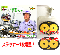 「SARABAカラスくん」クリップタイプとステッカーを併用