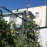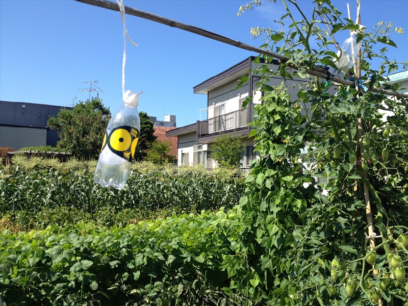 - 「CDの両面にステッカーを貼り付け、両端をテグスで引っ張り固定するだけでカラスは来なくなった」