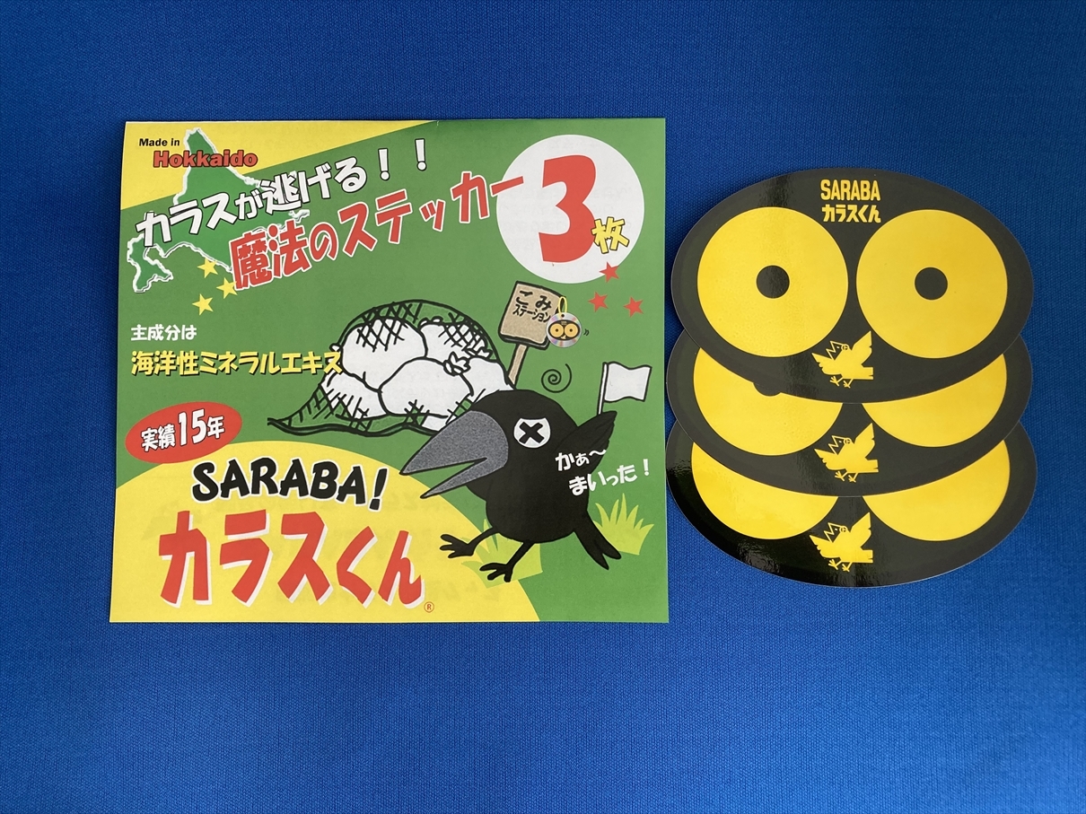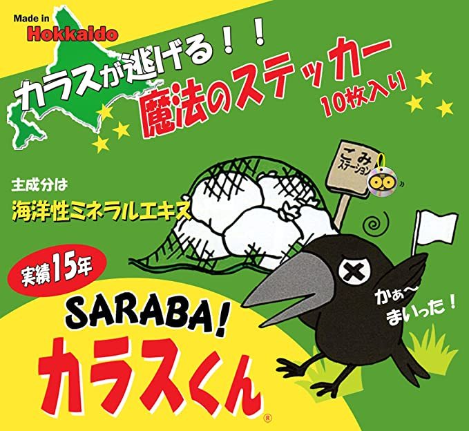 - 「SARABAカラスくん」テープタイプにはステッカーも同梱されております。場所によって使い分ける際は、テープタイプも是非ご利用ください。(テープ購入はコチラ)