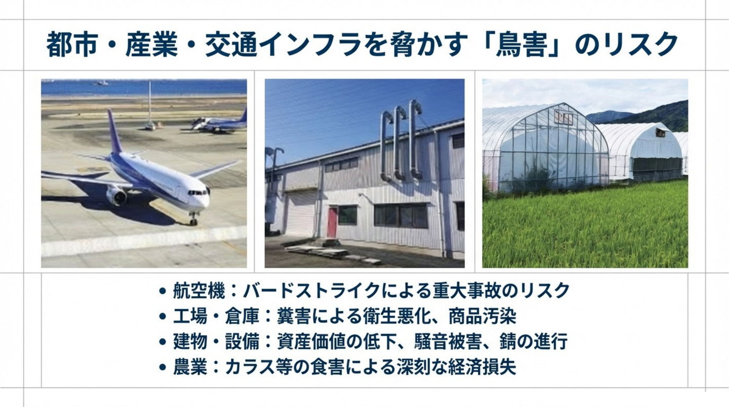 鳥が航空機やその他の構造物(鉄道、自動車、風力発電機、ビルなど)に衝突する事故のことです。