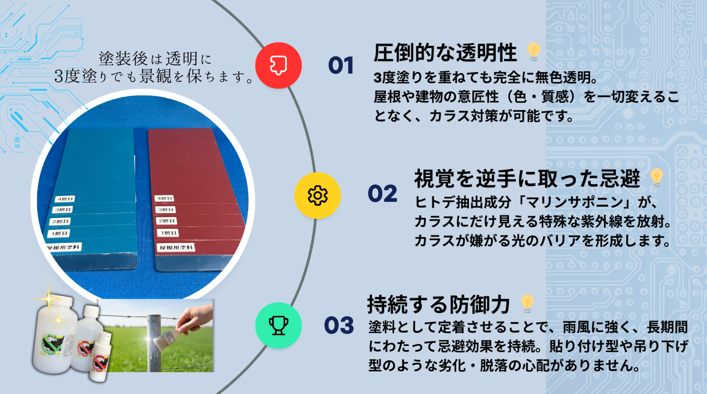 「バードコレンジャー」(鳥類忌避塗料)は、